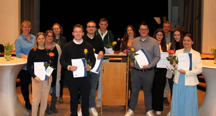 Vor der eigentliche Zeugnisübergabe mussten die nun ehemaligen Schülerinnen und Schüler der einzelnen Berufsschulklassen noch einmal beim Jeopardy ihre Fach- und Menschenkenntnisse beweisen. Anschließend gab es feierlich die Berufsschulzeugnisse von den Klassenlehrerinnen/-lehrer und die Berufsschulabschlusszeugnisse durch den Kammervertreter überreicht.