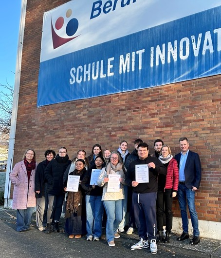 Zum Abschluss dieses Projektteils erhielten unsere Gäste Zertifikate, die ihnen das Kennenlernen des dualen Systems der Berufsausbildung durch Teilnahme am Unterricht und Begleitung unserer Auszubildenden an ihren Arbeitsplatz bescheinigen. Auch die begleitende Lehrkraft konnte von der Maßnahme profitieren und bekamen ebenfalls ein Zertifikat.