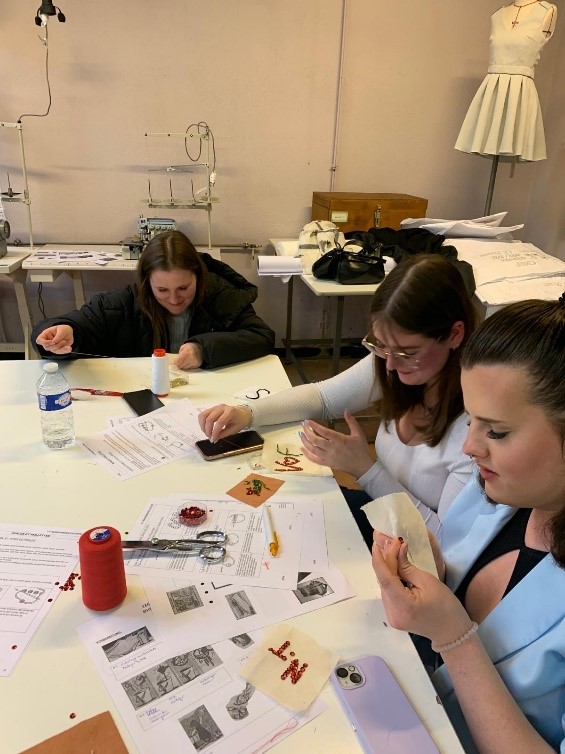 Pailletten aufnähen im Lycée Marie Laurencin