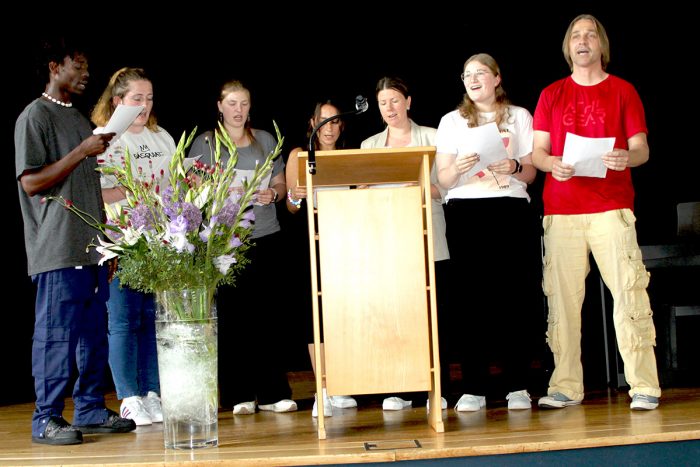 Abschließend gab es einen muskalischen Beitrag der SOA23, welcher durch Carmen Da Silva Machado, Anna Luisa Herzog und Dennis Galle unterstüzt wurde. Passenderweise wurde „an Tagen wie diesen“ von den Toten Hosen gesungen.