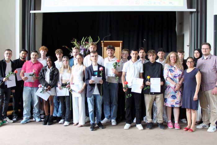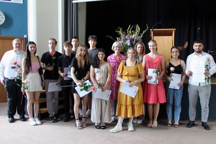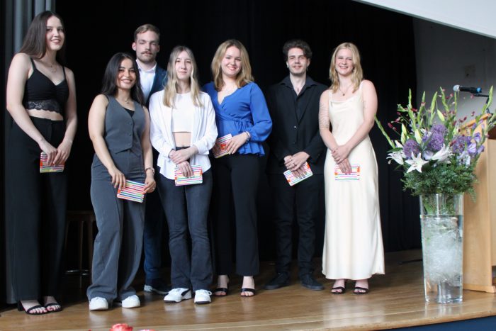 Was gehört noch zu einer „Siegerehrung“? Natürlich die Auszeichnung der besten Schüler*innen! In diesem Jahr konnten sieben Schüler*innen einen Abschluss mit einer 1 vor dem Komma erzielen.