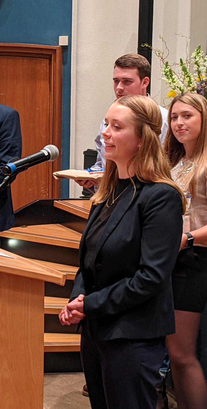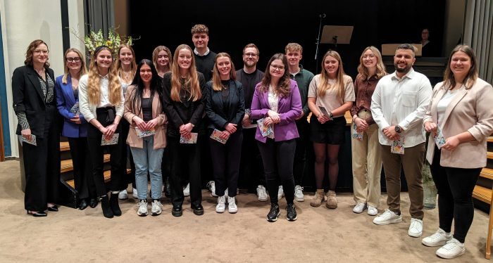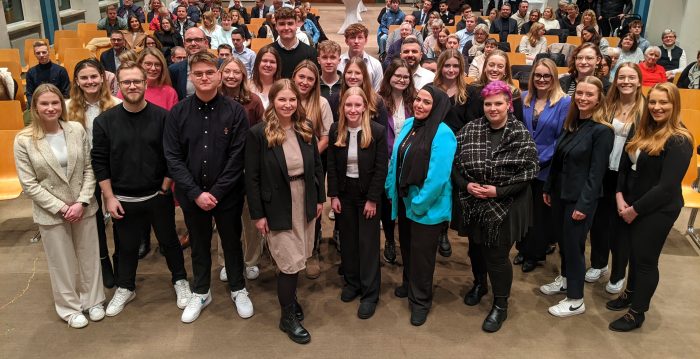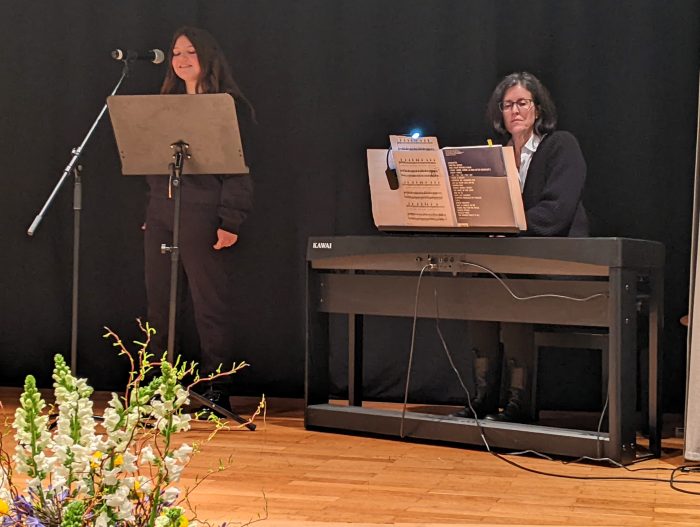 Aber auch Lehrkräfte sowie Absolventinnen und Absolventen gestalteten den gelungenen Abend aktiv mit. So wurde die ein oder andere Anekdote aus der Ausbildungszeit berichtet und eine Viezahl von Danksagungen ausgesprochen. Auch musikalisch hat der Abend einiges zu zu bieten. Linda Laible (Klavier) und Clara Schubert (Gesang) performten u. a. Abba´s Hit Slipping through my fingers.