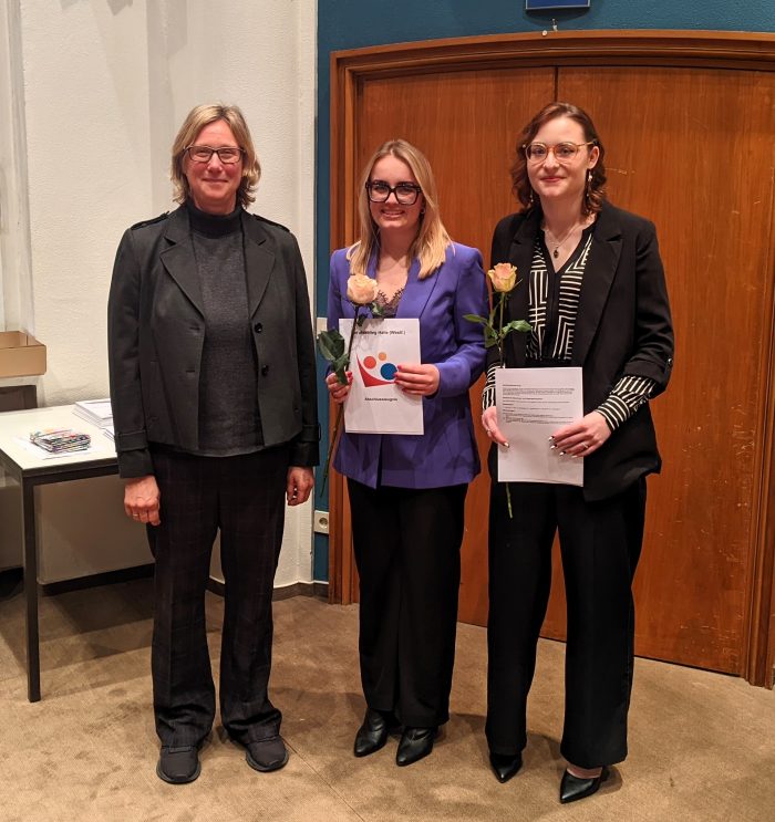 BK21, alphabetisch: Kirsten Gehlenborg und Marie Mosel mit Klassenlehrerin Nicole Hellenkamp