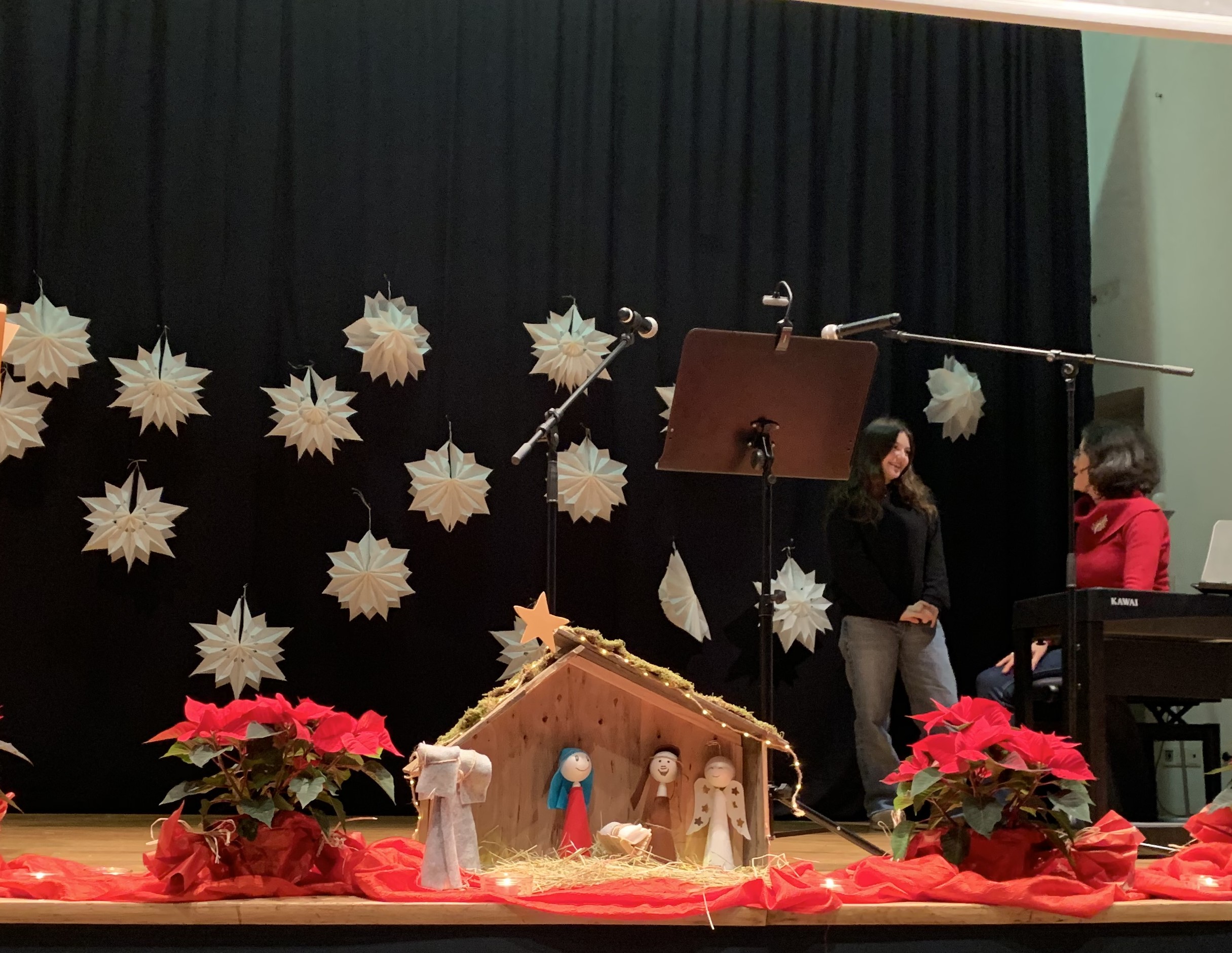 Weihnachtlich festliche Stimmung kam direkt durch den Gesangsbeitrag von Clara Schubert und Linda Laible (E-Piano) auf, die uns mit dem verträumten „Christmas Song“ von Robert Wells perfekt einstimmten.
