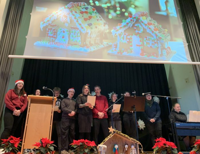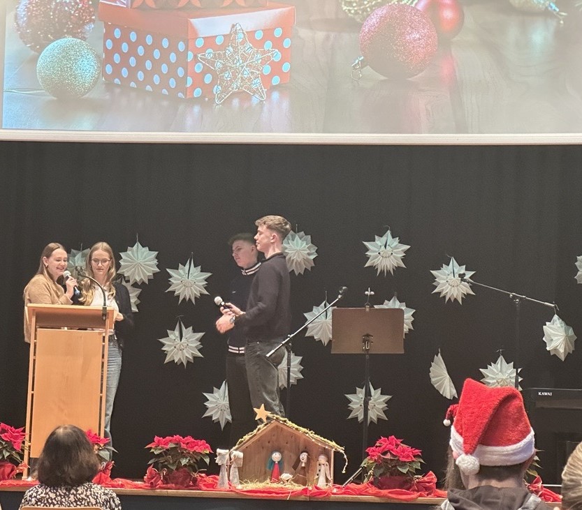 Diese Frage wurde in Kurzinterviews mit Schüler:innen und Kolleg:innen beantwortet. In den Antworten konnte sich die Anwesenden sicherlich wiederfinden, denn es wurde immer wieder auf die Bedeutung der gemeinsamen Zeit mit der Familie, den Gottesdienstbesuch oder auch liebgewonnene Traditionen wie den Weihnachtsbaum oder das Schenken und Geschenke bekommen verwiesen.