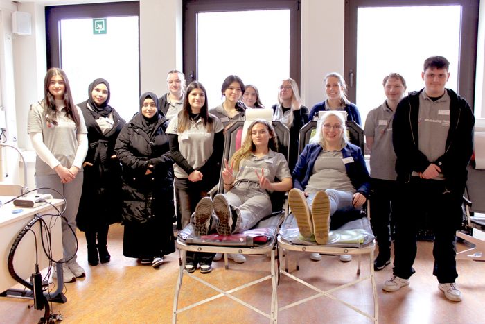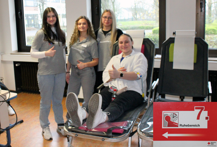 Die Blutspendeaktion wurde mit viel Engagement von Lernenden der Höheren Berufsfachschule für Gesundheit (HG22) des Berufskollegs Halle sowie durch Frau Ridder und Frau Budelmann (Referendarin) von Seiten der Lehrkräfte geplant und durchgeführt.