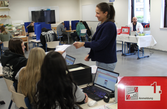 Schüler aus der HG_22 nahmen die zukünftigen Spender auf und verteilten Fragenbögen