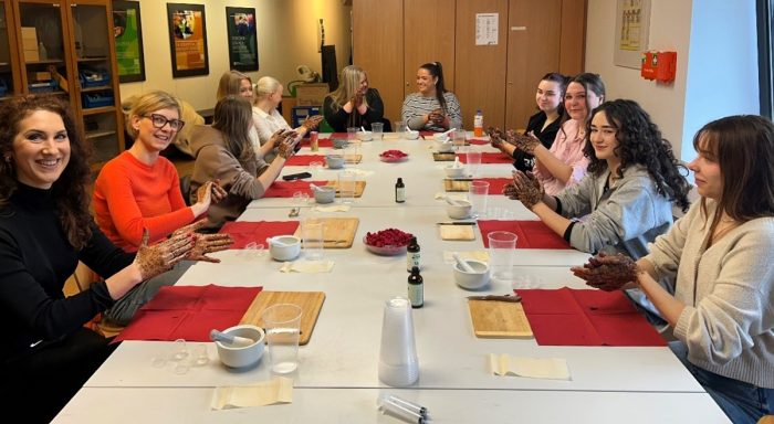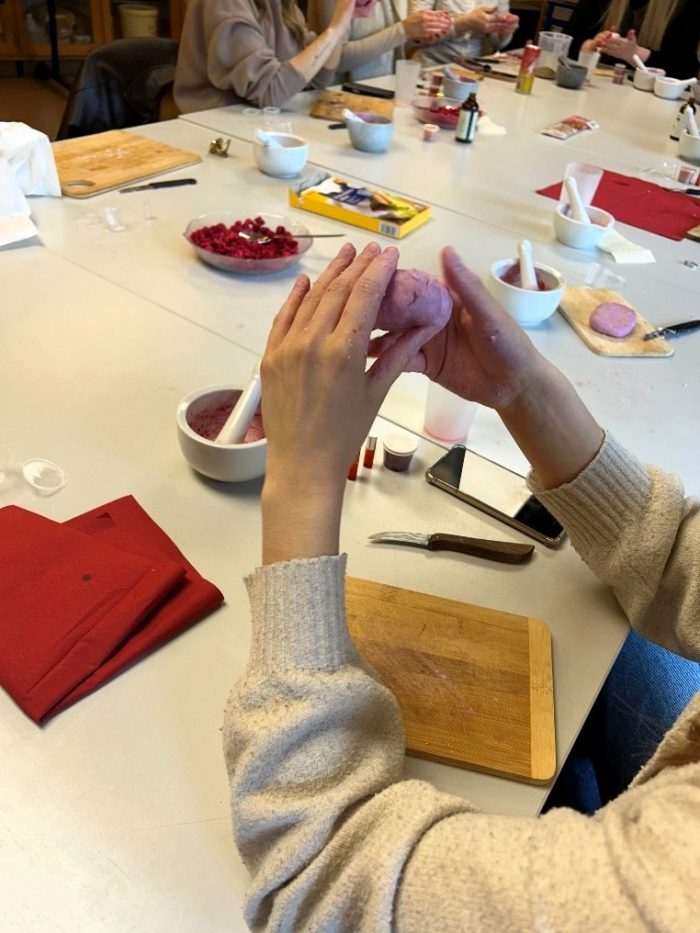 Ein weiteres Highlight des Workshops war die Herstellung individueller Seifen. Durch das Zerkleinern der Sheabutterseife – was viel Geduld erforderte – entstanden ganz persönliche Seifenstücke. Mit Zusätzen wie Kamille sowie einer Auswahl an ätherischen Ölen, darunter Jasmin, Neroli oder Vanille, gestalteten die Schülerinnen ihre Seifen individuell. Dabei wurden kreative Formen wie Seifenkugeln oder Herzen geformt, sodass jede Seife ein echtes Unikat wurde.