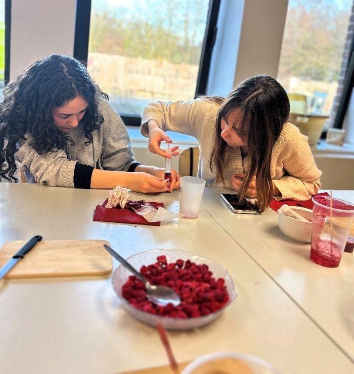 Anschließend stellten die Schülerinnen ihren eigenen Lippenbalsam her. Dafür wurden neben Bienenwachs eine Auswahl an Mandel-, Jojoba,- und/oder Kokosöl verwendet. Wer seinem Lippenbalsam eine besondere Note verleihen wollte, konnte mit Roter Beete eine rötliche Färbung erzielen.