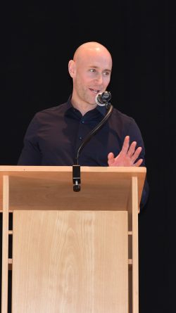 Zum guten Schluss: Seine (wahrscheinlich) letzte Rede in der Aula des Berufskollegs Halle.
