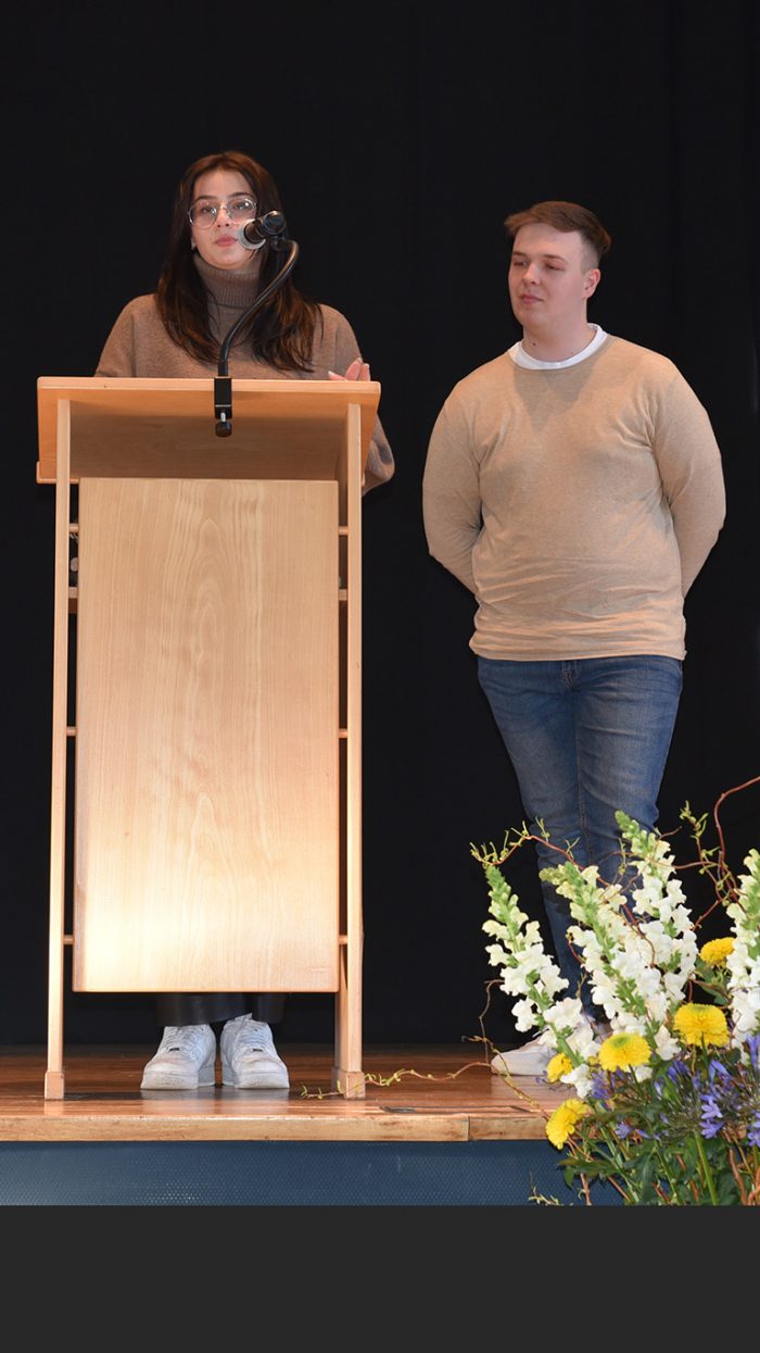 Die vorletzte Rede hielten der Schülersprecher Lennart Hagemann und die stellvertretende Schülersprecherin Aylin Nazlica.